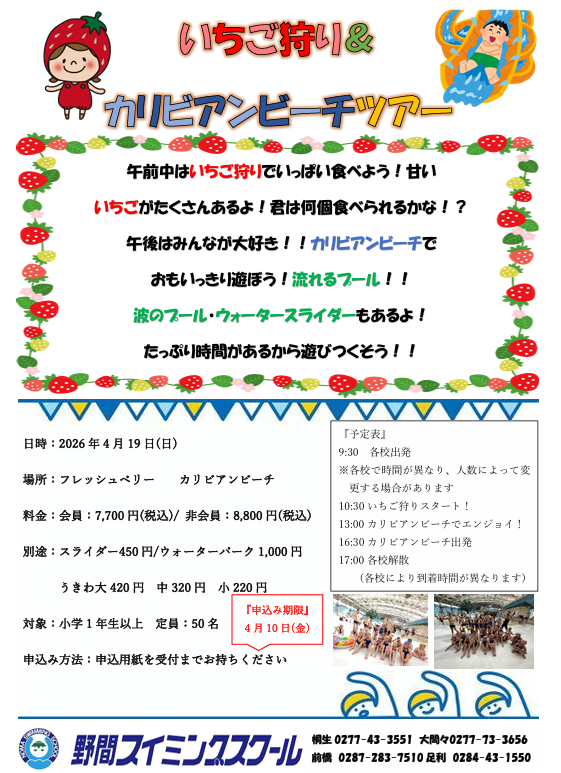 2026年3月11日 / 最終更新日 : 2026年3月11日 user イベント こども【4/19(日)いちご狩り&カリビアンビーチツアーのお知らせ】 自分でいちごを摘んで食べよう♪午後はレッツカリビ! FacebookCopy